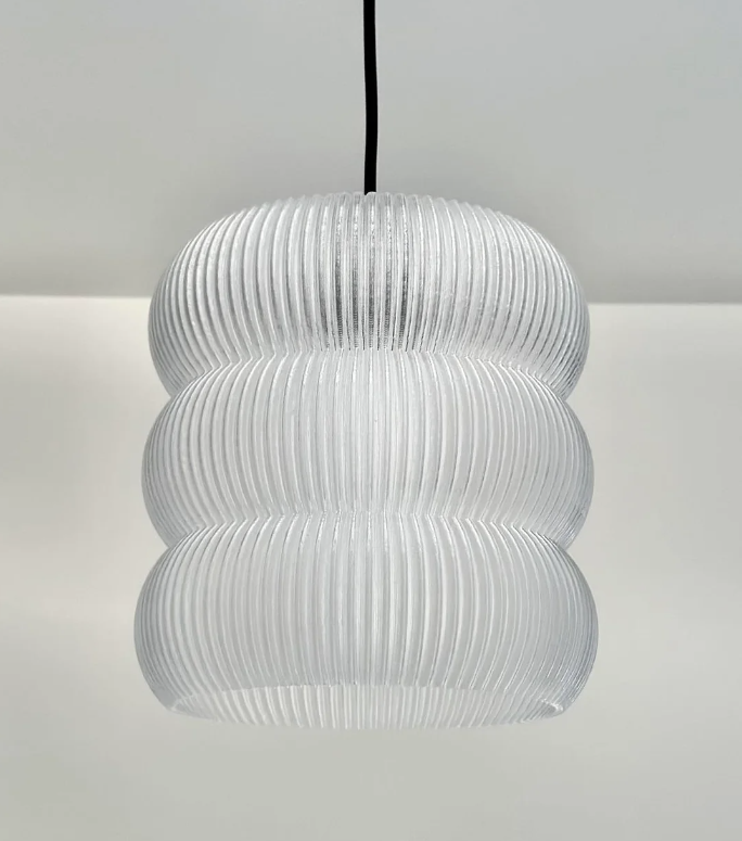 Élevez l’atmosphère de votre pièce avec la Nuage Triptyque, une suspension sculpturale composée de trois volumes ondoyants empilés comme de légers nuages superposés. Les fines stries verticales de son diffuseur créent un jeu de lumière soyeux : éteinte, la lampe dévoile un blanc vaporeux ; allumée, elle se pare d’un éclat doré et diffuse une lueur douce et enveloppante.