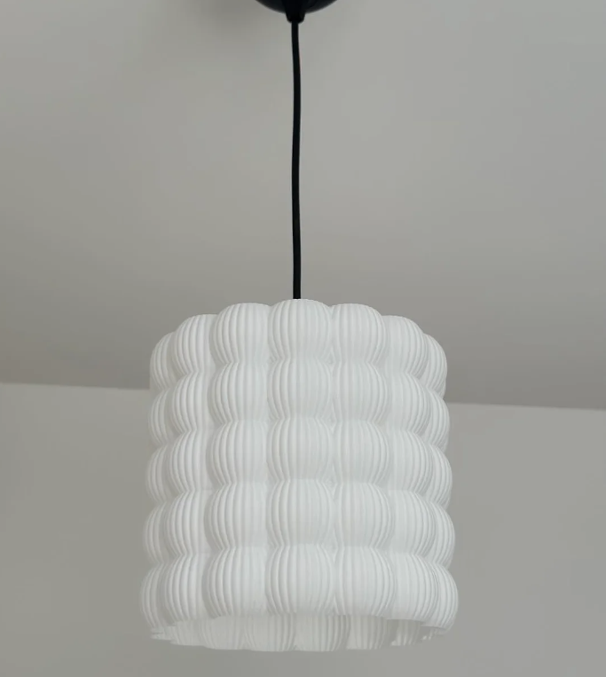 Caractéristiques principales Effet lumineux doux : le matériau translucide diffuse une lumière homogène, idéale pour le salon, la chambre ou la salle à manger. Reliefs striés et modules arrondis pour une présence sculpturale même lorsqu’elle est éteinte. Fabrication légère & résistante : abat-jour en polymère haute qualité (léger, facile à nettoyer). Installation simplifiée : câble électrique gainé noir, rosace de plafond métallique incluse.