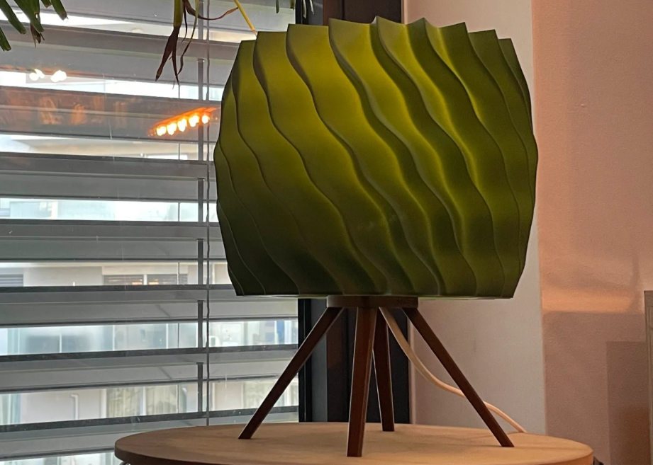 | Invitez un souffle de nature dans votre intérieur avec la lampe “Ondulation Végétale”. Son abat-jour sculptural, habillé d’ondulations organiques couleur vert mousse, diffuse une lumière douce rappelant les rais de soleil filtrant à travers le feuillage. Montée sur un élégant trépied en bois, elle marie allure rétro et design contemporain pour sublimer une table d’appoint, une console ou une table de nuit.