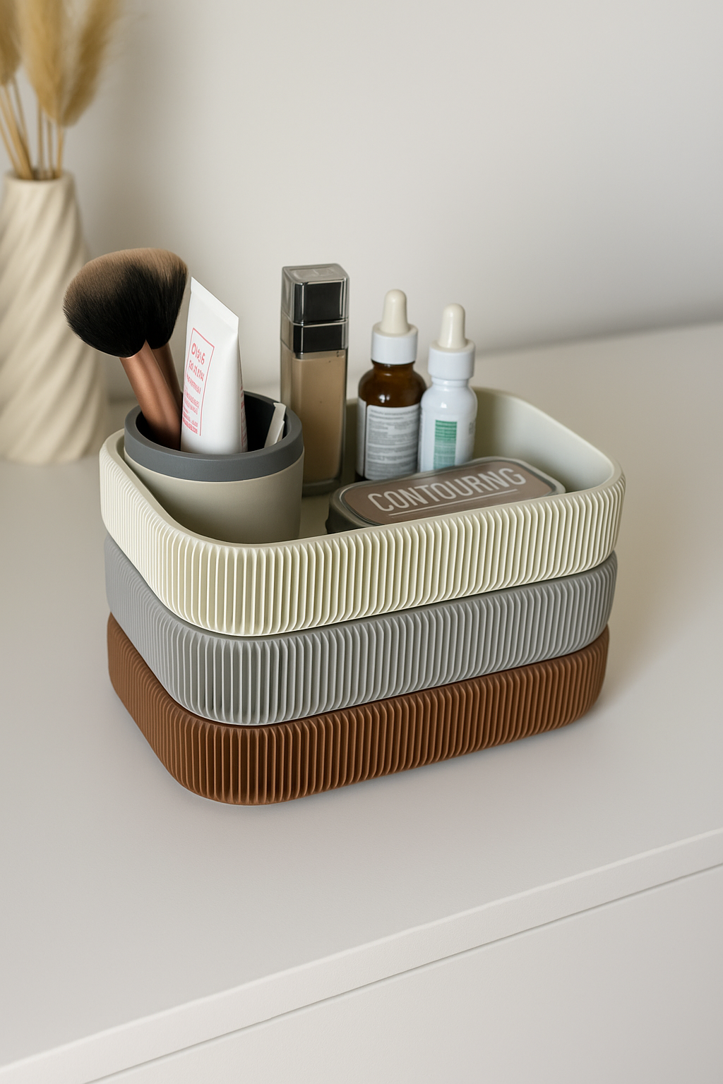 Organisez votre quotidien avec style grâce à ces vide-poches design aux bords texturés et empilables. Parfaits pour la salle de bain, l’entrée ou le bureau.