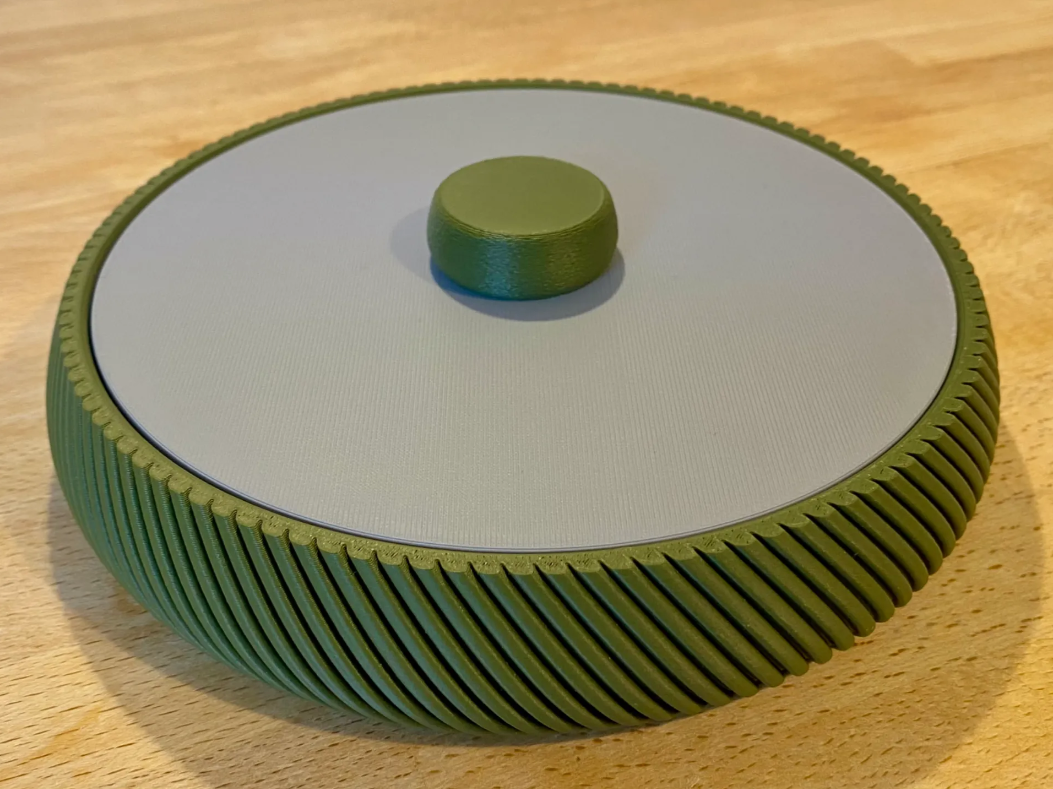 Rondo Twist est une coupelle 3 en 1 qui conjugue esthétique contemporaine et praticité :Design rayonné – Son motif hélicoïdal donne du relief à votre table tout en offrant une excellente prise en main.Couvercle assorti – Fermeture discrète pour préserver la fraîcheur ; retourné, il sert aussi de plateau de service minimaliste.Éco-conception – Fabriqué en PLA biosourcé (amidon de maïs) : un matériau léger, robuste et 100 % recyclable.Fabrication locale – Imprimé à la demande dans notre atelier français, afin de limiter le stock inutile et le transport.