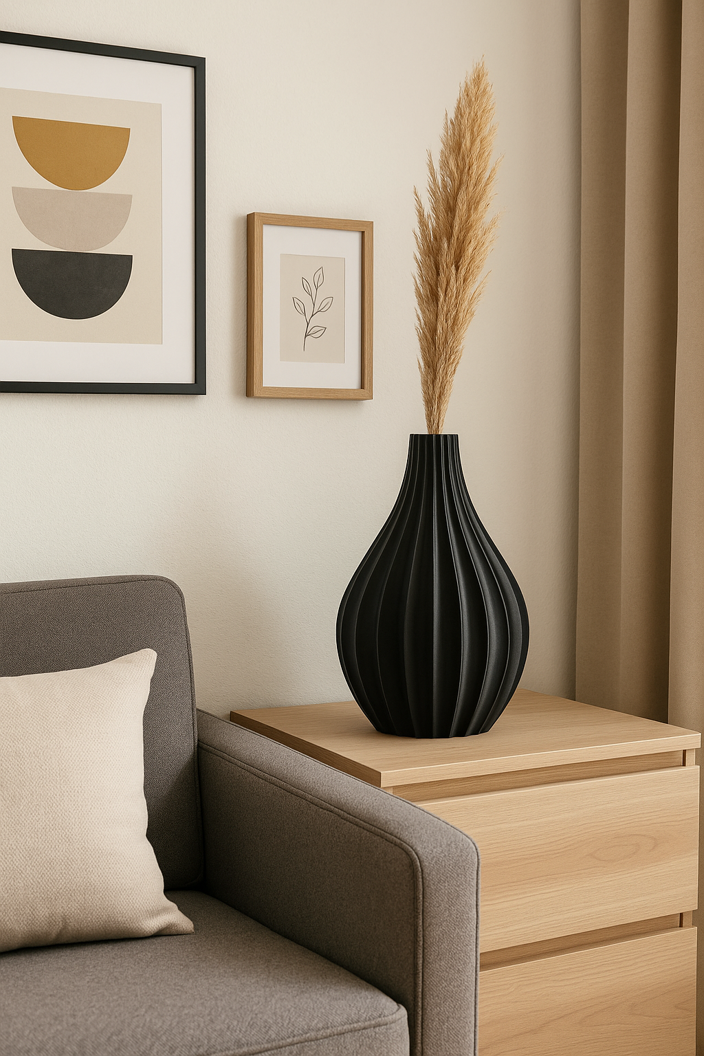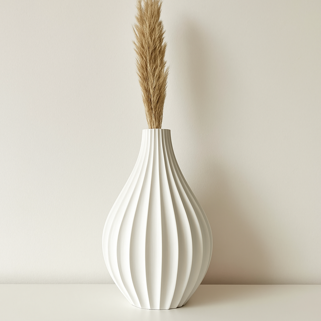 Fabriqué à partir de matériaux écologiques, ce vase conjugue modernité, conscience durable et légèreté. Il est idéal pour accueillir des fleurs séchées, comme des pampas, ou pour être exposé seul en tant qu’objet d’art.